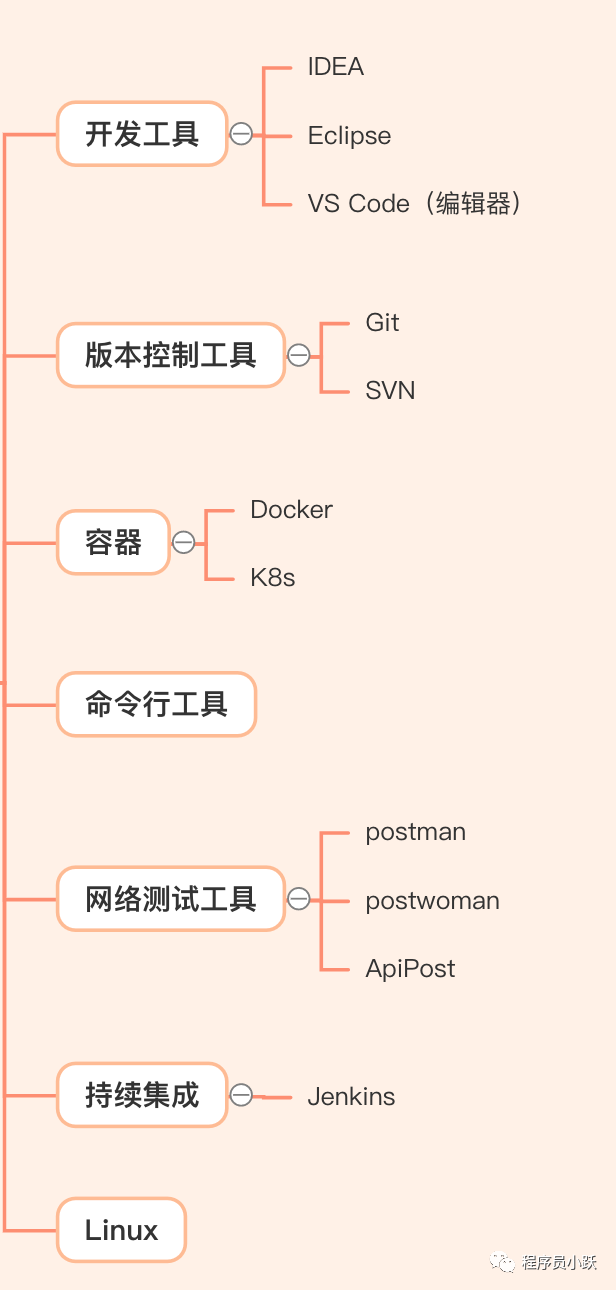 开发工具:IDEA、Eclipse、VS Code 版本控制工具:Git、SVN Docker、K8s 命令行工具:iterm2(MacOS) 网络测试工具: PostMan、PostWoman 网络抓包工具 持续集成:Jenkins Linux:远程连接Linux,Linux的常用命令(非必备)