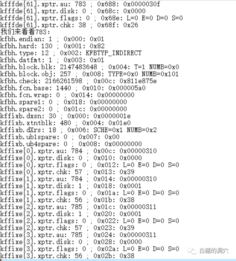 kfffde[3].xptr.au: 60 ; 0x4b8: 0x0000003c ----AU 60是第二个块