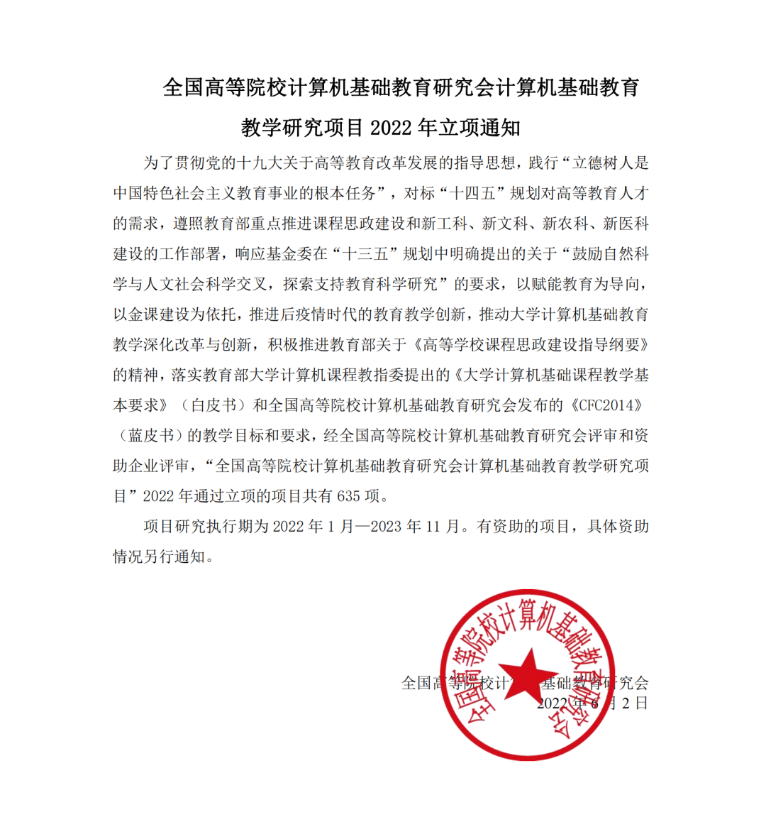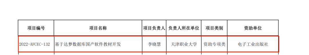 近日,全国高等院校计算机基础教育研究会公布了“计算机基础教育教学研究项目2022年立项”评审结果,其中申报项目“基于达梦数据库国产软件教材开发”成功获批,项目编号2022-AFCEC-132。