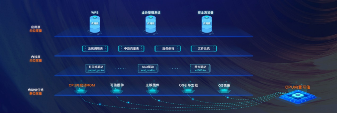 实现从固件到应用的度量和校验传递,为设备建立了一条完整无缝信任链;