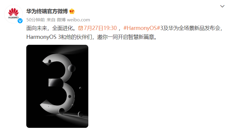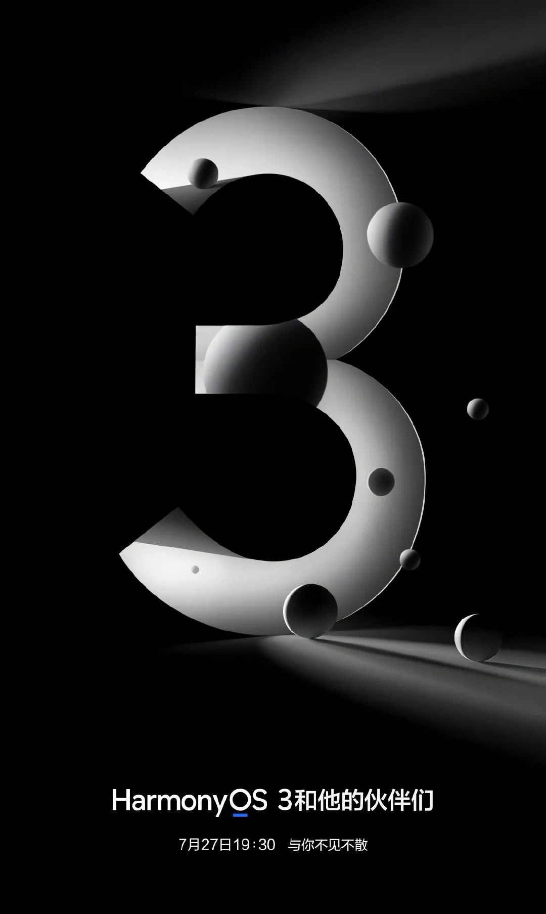 今天,华为官方正式宣布了鸿蒙 HarmonyOS 3 系统及华为全场景新品发布会定于 7 月 27 日举行,将带来连接、页面、协同等方面的系统新体验。