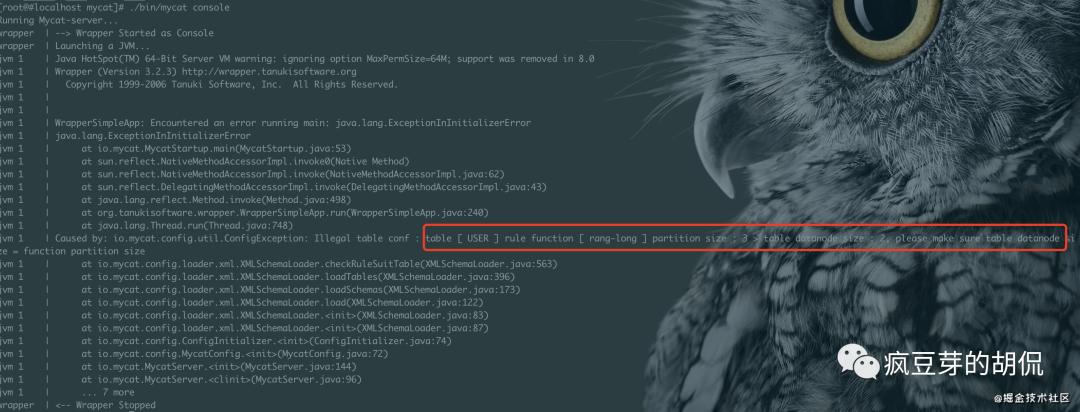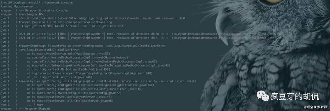 1.配置的小错误 重新启动mycat发现又报错了,这次是一个配置的错误: