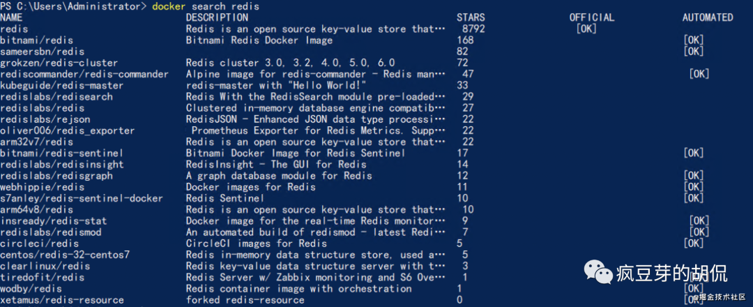 docker查询redis镜像,使用starts最多的一个, 一般就是第一个