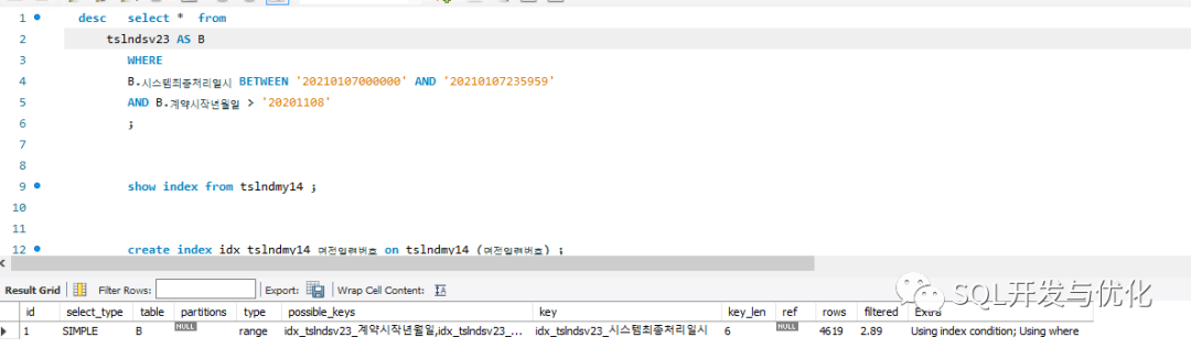 从具体SQL 中可以看出 where 条件里能达到好的过滤条件的 应该是