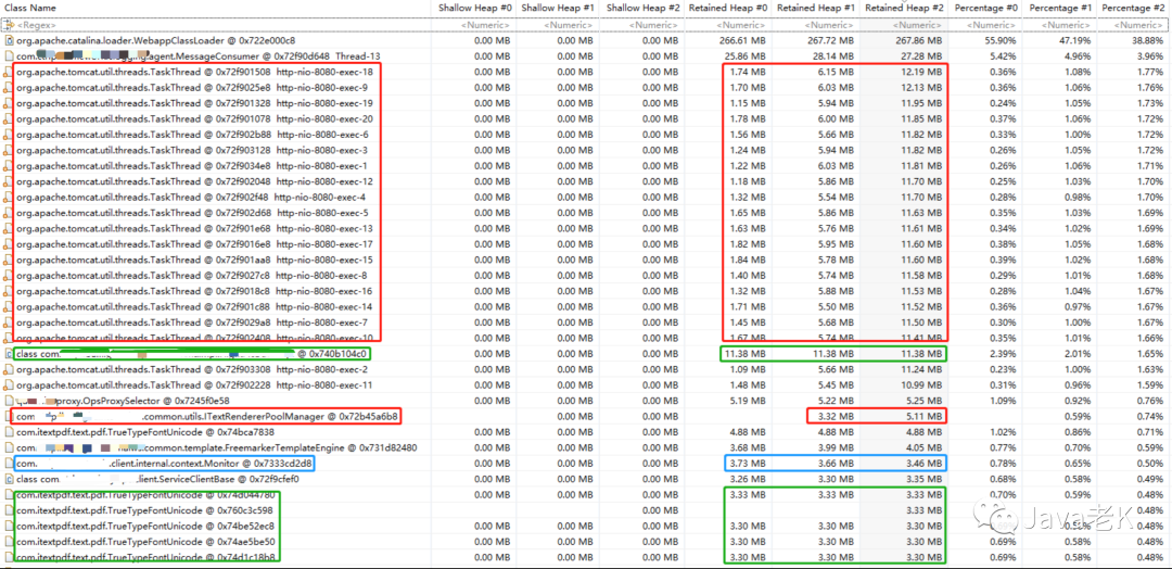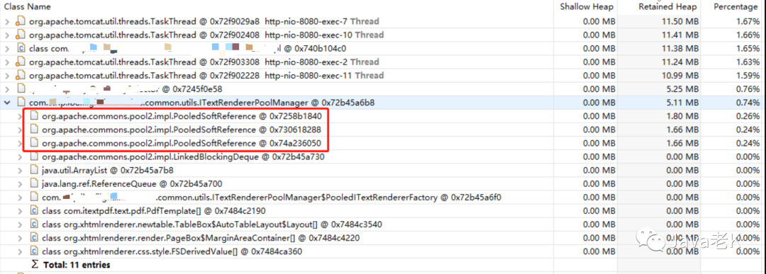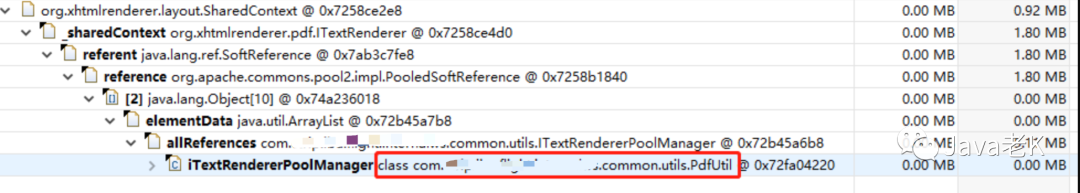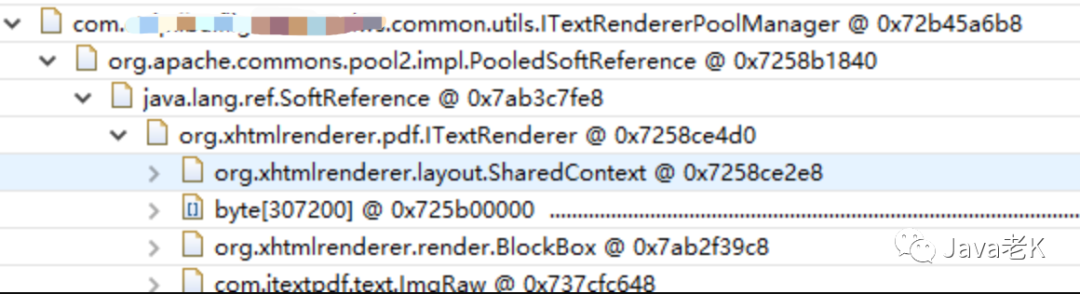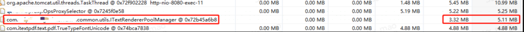 还有另外一个内存泄露的嫌疑是"com.*.common.utils.ITextRendererPoolManager