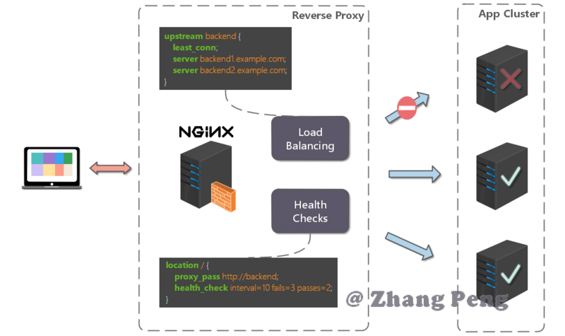 http { #此处省略一些基本配置 upstream product_server{ server www.helloworld.com:8081; } upstream admin_server{ server www.helloworld.com:8082; } upstream finance_server{ server www.helloworld.com:8083; } server { #此处省略一些基本配置 #默认指向product的server location / { proxy_pass http://product_server; } location /product/{ proxy_pass http://product_server; } location /admin/ { proxy_pass http://admin_server; } location /finance/ { proxy_pass http://finance_server; } }}