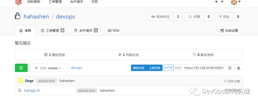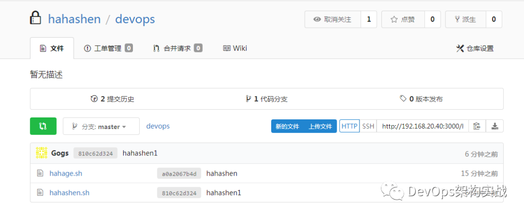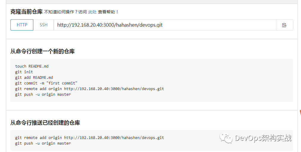 git clone http://192.168.20.40:3000/hahashen/devops.git
