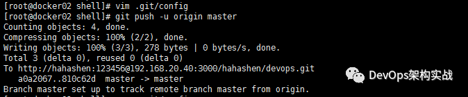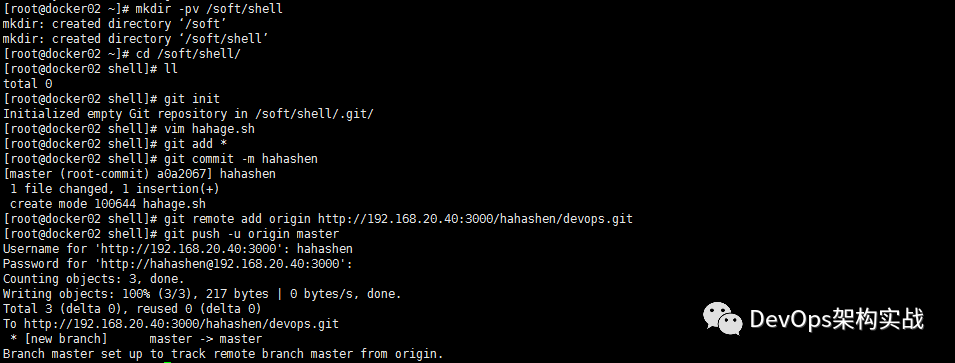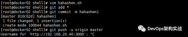 [root@docker02 shell]# git remote add origin http://192.168.20.40:3000/hahashen/devops.git