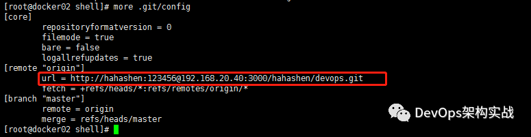 配置密码url = http://hahashen:123456@192.168.20.40:3000/hahashen/devops.git