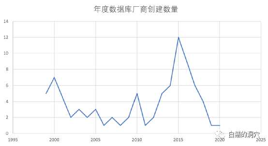 2013年出现了一个更大的数据库厂商爆发性增长的浪潮,这一次进入这个行业的厂商类别很多,规模也相差甚大。