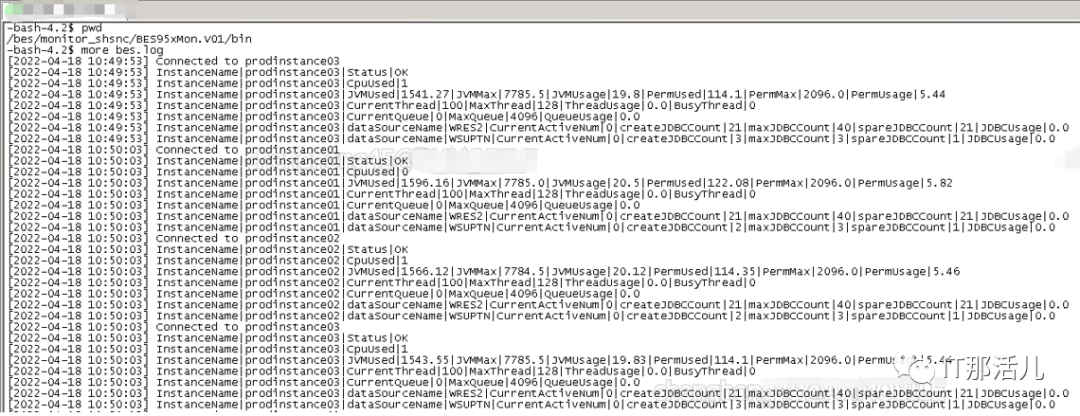 巡检脚本的原始数据为BES监控程序采集的bes.log日志,该日志每十秒写入新的采集数据,如下图所示: