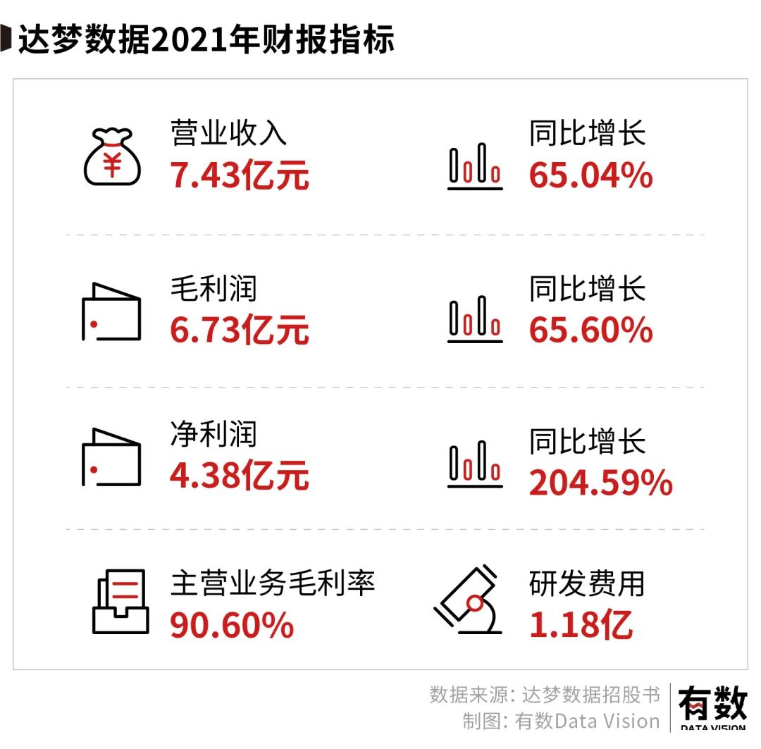 招股书显示,达梦数据2019-2021年营收分别为3亿,4.5亿,7.4亿,净利润为8374万,1.44亿,4.38亿,盈利水平较高,其中公司主营业务毛利率三年分别高达80.32%、90.27%和 90.60%。
