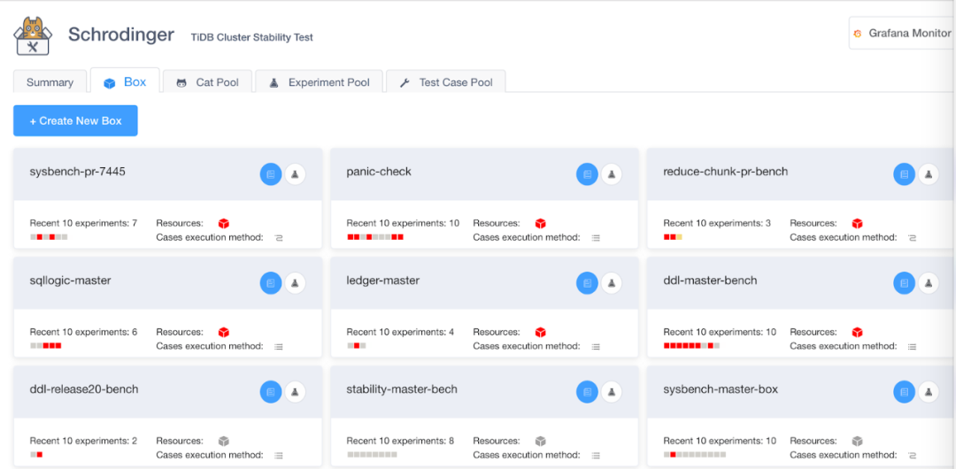 用技术的语言来说,Schrödinger 的核心思想很简单,使用 K8s 作为底座,将不同的 TiDB 测试集群以及测试用例跑在一个个受控的容器集群中(盒子),然后对底层的容器平台进行错误注入。