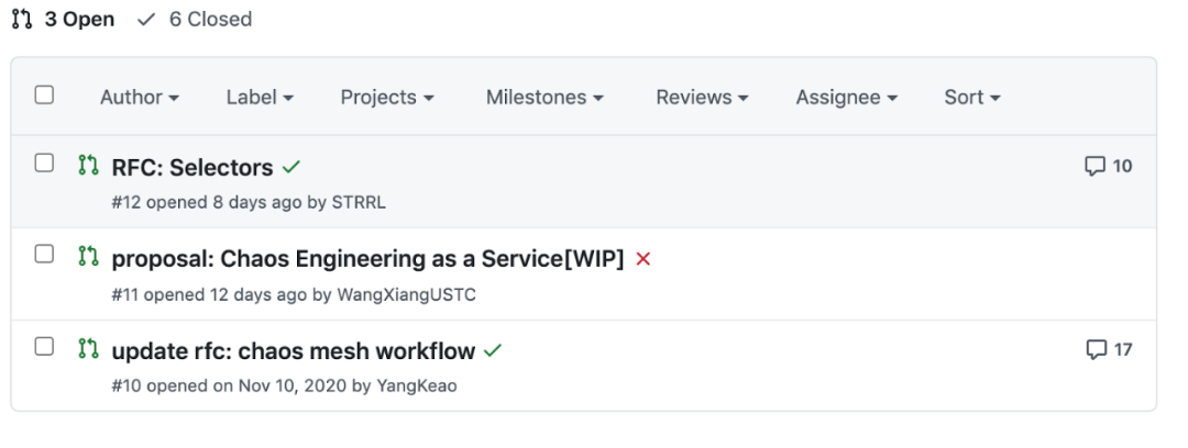 随着 Chaos Mesh 项目的成长,小小的团队也渐渐扩大起来,不断有新的力量加入我们:有了专业的前端工程师,有了更多有经验的小伙伴,同时我们的社区开始茁壮成长。还记得最初我们开发新功能的时候,就是觉得这个需求有道理,那就开始搞。现在发现,当初的模式虽然效率高,但是缺乏思考,往往会实现一些没有实际用途的功能。社区的发展推动我们必须转换自己的角色,因为 Chaos Mesh 项目不再是几个人的项目,而是一个社区化的项目,我们也只是社区中的普通一员。同时, Chaos Mesh 也逐渐建立起了用户群体,我们每一个 PR 都要对社区和用户负责。为此我们创建了 RFCs 仓库,用来收集和讨论 Chaos Mesh 的需求和设计。如此一来,既保证了我们的设计都经过社区的讨论和认可,也在一定程度上能够吸引更多小伙伴一起帮助 Chaos Mesh 项目成长。