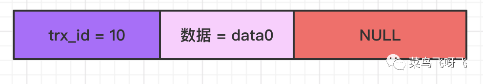 下面举几个例子,来解释一下 ReadView 机制下,数据的读取规则。先假设表中有一条数据,它的 row_trx_id=10,roll_pointer 为 null,那么此时 undo log 版本链就是下图这样: