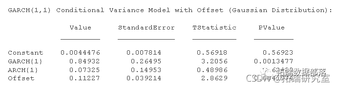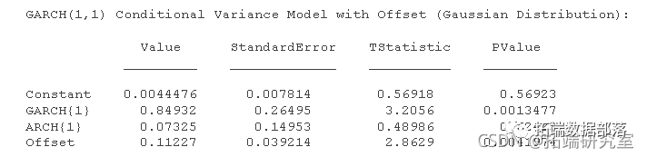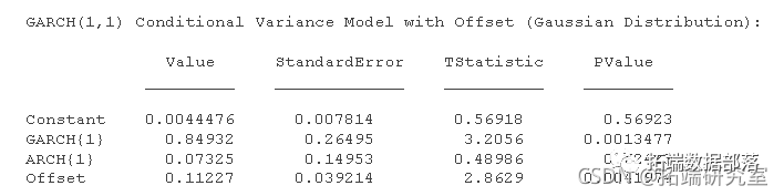 包括条件方差模型常数