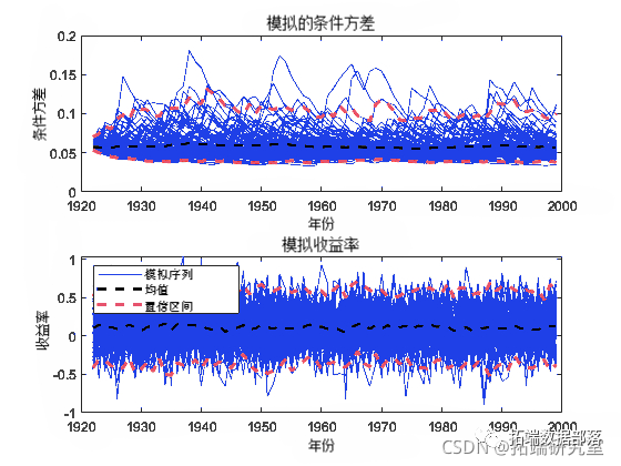 模型对象模拟条件方差或序列路径 。也就是说,从估计garch