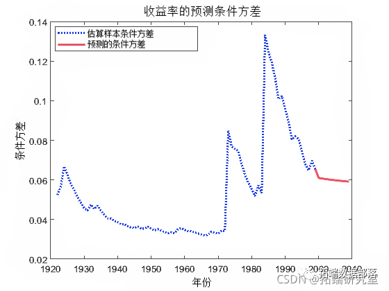 模型对象预测条件方差 。也就是说,根据估计garch