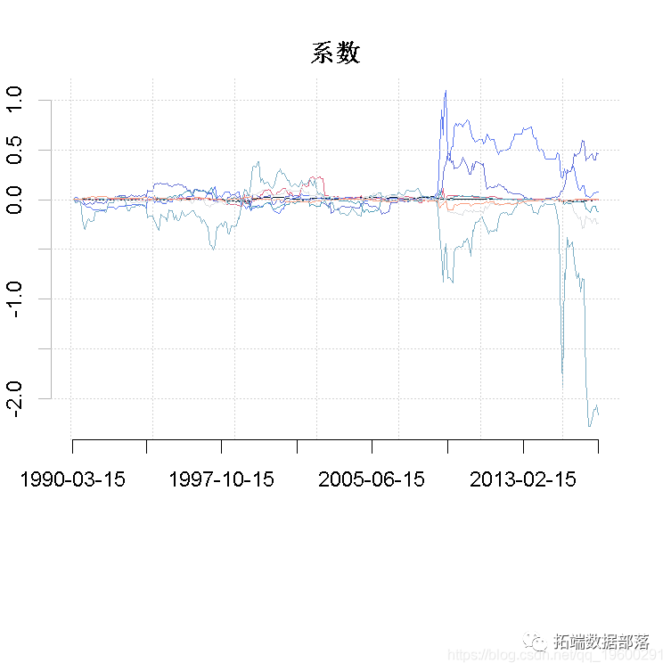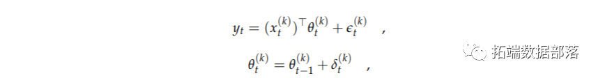 其中k = 1, ... . ,K,θt是回归系数的列向量。假设误差遵循正态分布,即e(k)t∼N(0,V(k)t)和δ(k)t∼N(0,W(k)t)。
