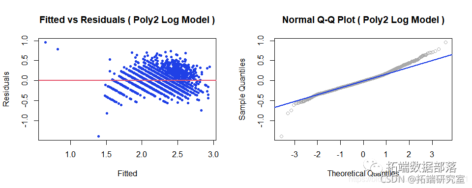 初始模型违反了恒定方差和正态性假设。使用各种方差稳定技术和转换,我们能够提出一个很好的模型。这些选定的候选模型使用了交互项、预测变量的多项式变换和响应变量的对数变换。
