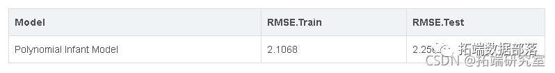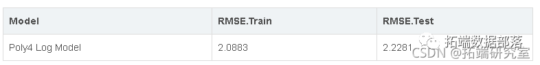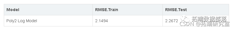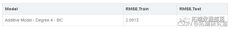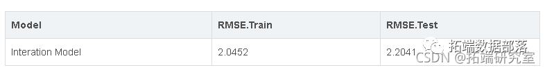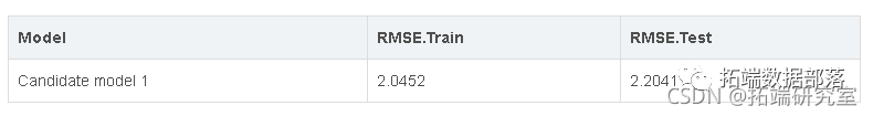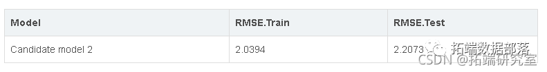 我们看到训练和测试 rmse 结果都低于我们的候选模型。