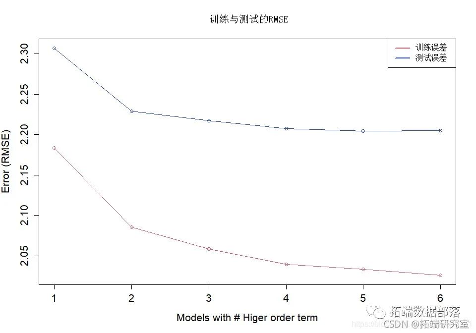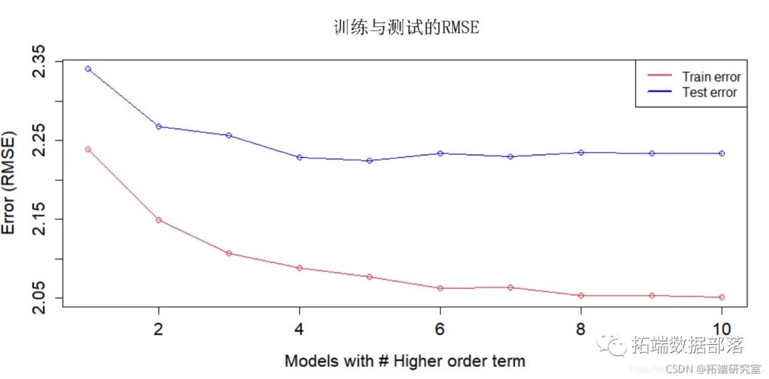 这是所有 3 个候选模型的测试/训练 RMSE 的快速比较。
