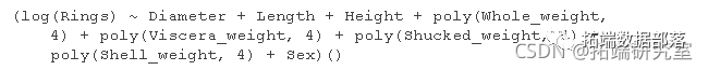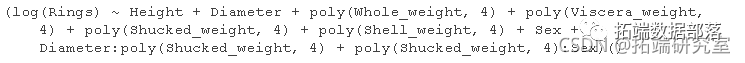 lm(log(Rings) ~ Height + Diameter + poly(Whole_weight, 4) +