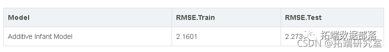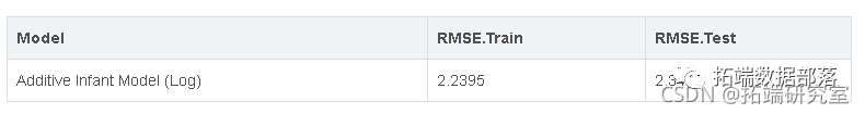 同样,它非常相似。这些结果为我们指明了另一个方向,通过将female 和 组合male 成一个级别名称作为 ,我们在数据集中创建了一个新变量 non-infant。所以现在新的分类变量有两个级别 infant 和 non-infant。在我们的一个候选模型中,我们使用这个新的分类而不是原始的来查看其效果。最后,这是我们选择的模型。