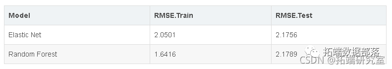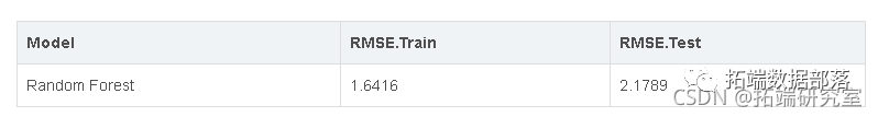 我们在这里实现了随机森林回归模型进行预测,看看我们是否可以进一步改进。随机森林回归模型的 RMSE 结果比候选模型的 RMSE Score 更好。