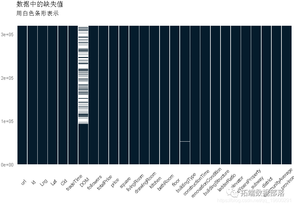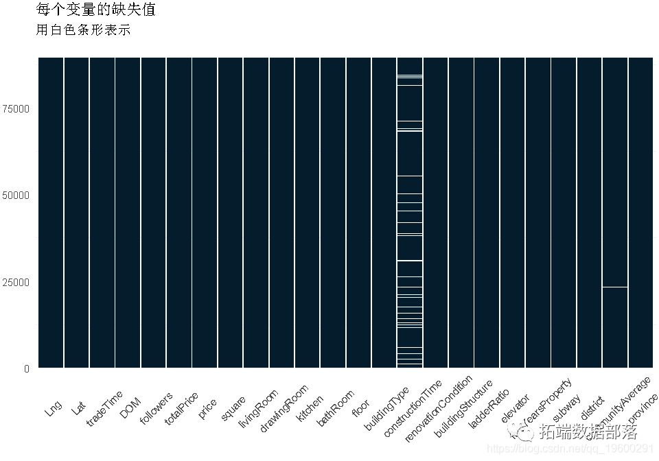 否则,buildingType和communityAverage(pop.)中只有几个缺少的值,我决定简单地删除这些值。事实上,它们只占了约30行,而整个数据集的数据量为300k+,因此损失不会太大。