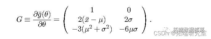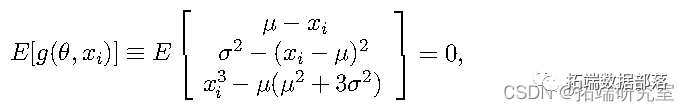 对于正态分布的两个参数 ( µ,σ ),我们有以下矩量条件向量: