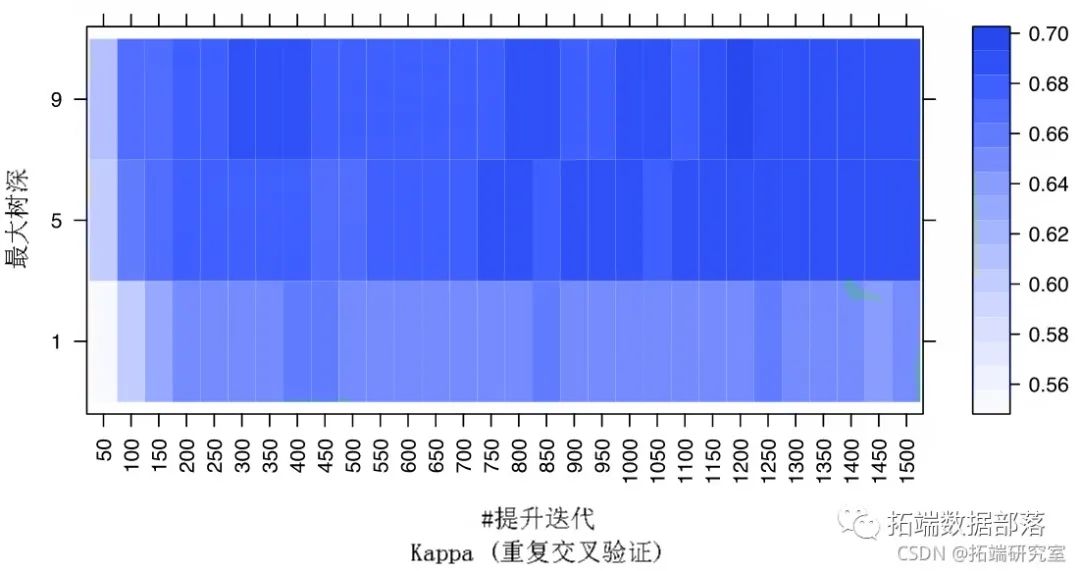 这些函数的主要问题与从最简单到复杂的模型排序有关。在某些情况下,这很容易(例如简单的树、偏最小二乘法),但在这种模型的情况下,模型的排序是主观的。例如,使用 100 次迭代且树深度为 2 的提升树模型是否比使用 50 次迭代且深度为 8 的模型更复杂?该包做出了一些选择。在提升树的情况下,该包假设增加迭代次数比增加树深度更快地增加复杂性,因此模型按迭代次数排序,然后按深度排序。