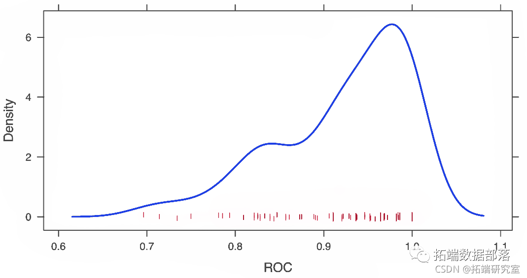 在这种情况下,与最佳调整参数相关的 ROC 曲线下的平均面积在 100 次重采样中为 0.922。