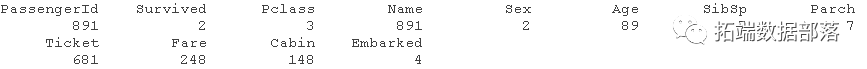 现在我们需要检查缺失值,并使用sapply()函数查看每个变量有多少个唯一值,该函数将作为参数传递的函数应用于数据框的每一列。