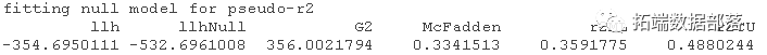 虽然不存在与线性回归的R2完全等同的指标,但麦克法登R2指数可以用来评估模型的拟合度。