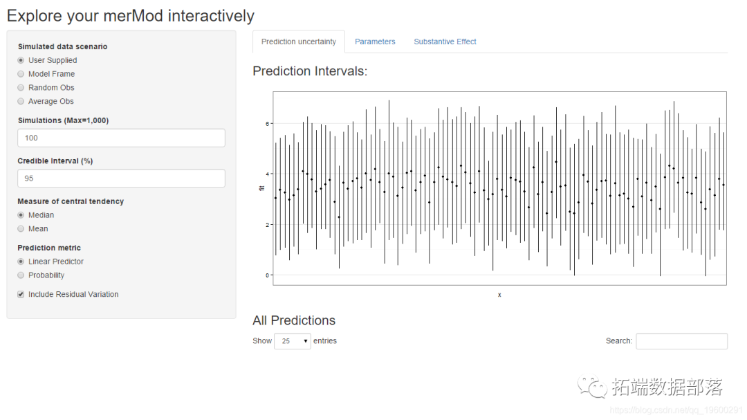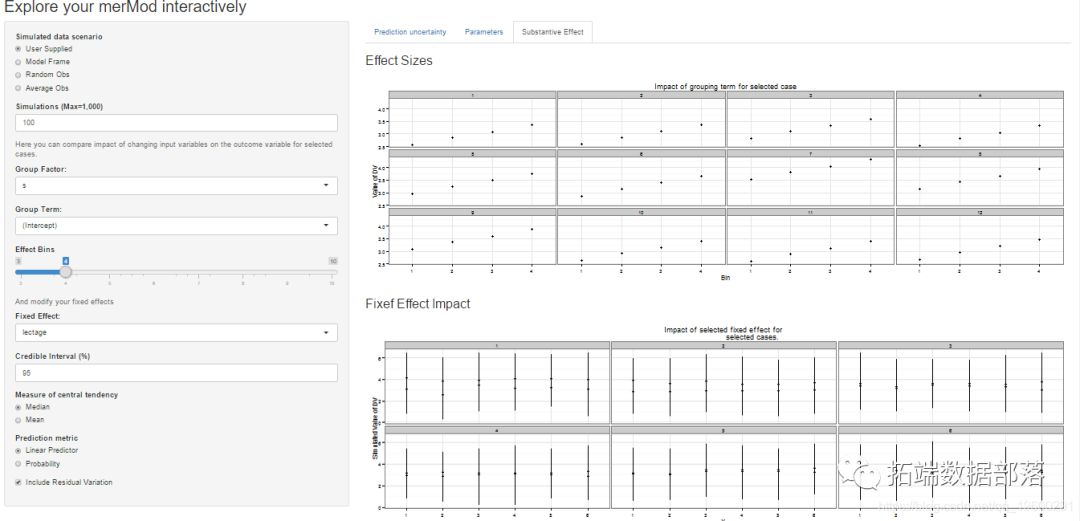 在第三个标签上有一些方便的方法,显示效果的影响或程度predictInterval