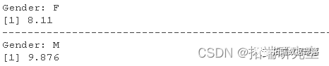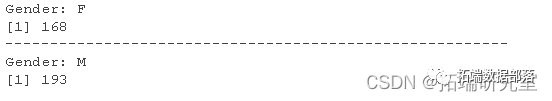 我们使用 length() 来查找每个组的样本大小。请注意,女性人数为 n[1],男性人数为 n[2]。