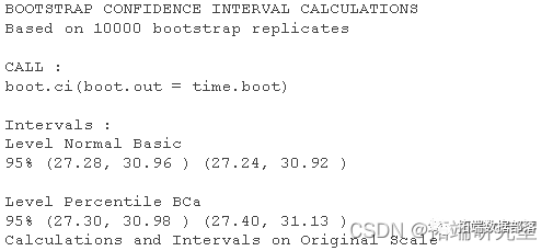 但是内置函数 boot.ci() 将使用多种方法计算 bootstrap confidenceintervals。