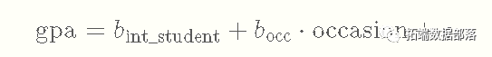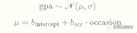 更严格地说,GPA和μ变量有一个隐含的下标来表示每个观察值,但你也可以把它看成是单个个体在单个时间点的模型。