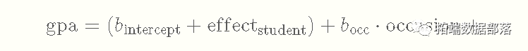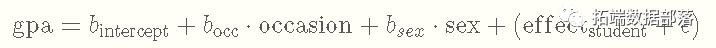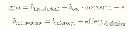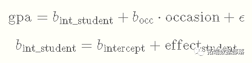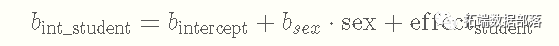 这样一来,我们就会有针对学生的截距,因为每个人都会有自己独特的影响加到总体截距上,导致每个人的截距不同。