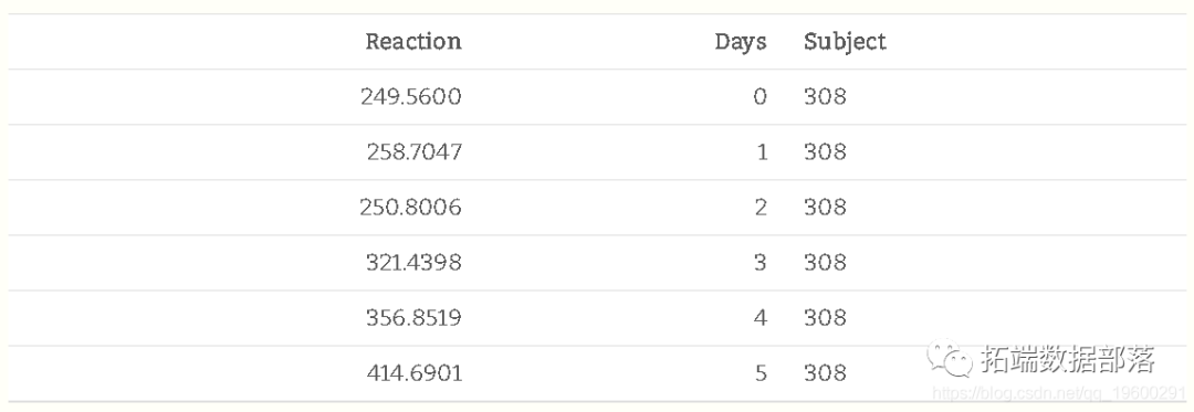 在这个练习中,我们将使用lme4软件包中的睡眠研究数据。以下是对它的描述。
