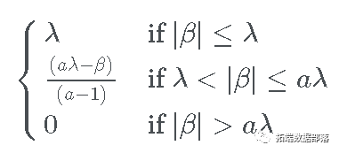 另一方面,对于较小的 β 值 (其中 |β|≤λ),SCAD 惩罚在 β 中是线性的。对于 β 的中等值(其中