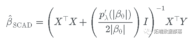 将 SCAD 惩罚的二次逼近代入完整的最小二乘目标函数,优化问题变为: