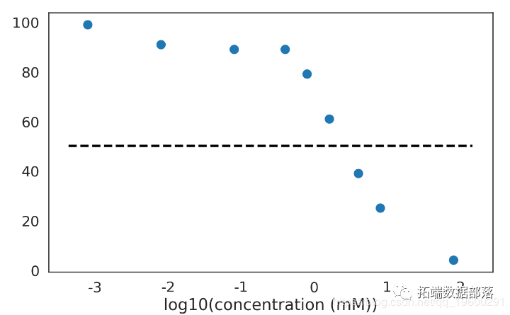 给定数据, 求出化学物质的IC50值是多少, 并且求出置信区间( 原文中the uncertainty surrounding it, 后面看类似置信区间的含义)?