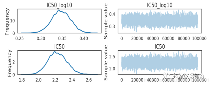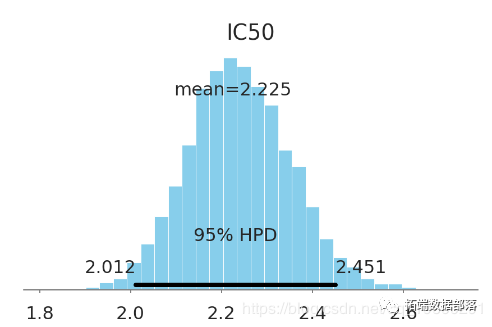 该化学物质的 IC50 大约在[2 mM, 2.4 mM] (95% HPD). 这不是个好的药物候选者. 在这个问提上不确定性影响不大, 看看单位数量级就知道IC50在毫摩的物质没什么用...