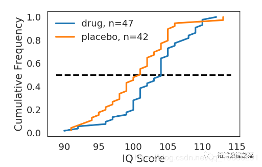 vs.安慰剂组测量参与者的IQ分数