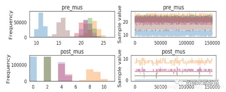 泊松分布的参数是离散均匀分布: _μij∼DiscreteUniform(0,104),j∈[pre,post],i∈[1,2,3...]_