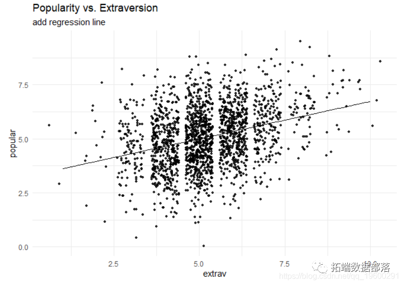 在开始分析之前,我们可以绘制外向性和受欢迎程度之间的关系,而无需考虑数据的多层结构。