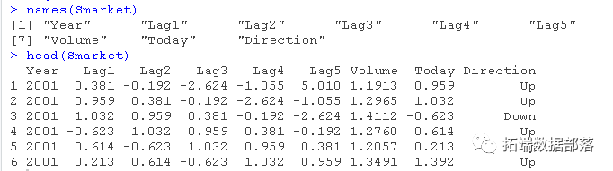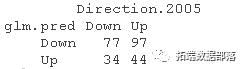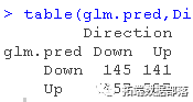 最后,你对glm.pred再次使用ifelse()函数来生成上涨和下跌变量。