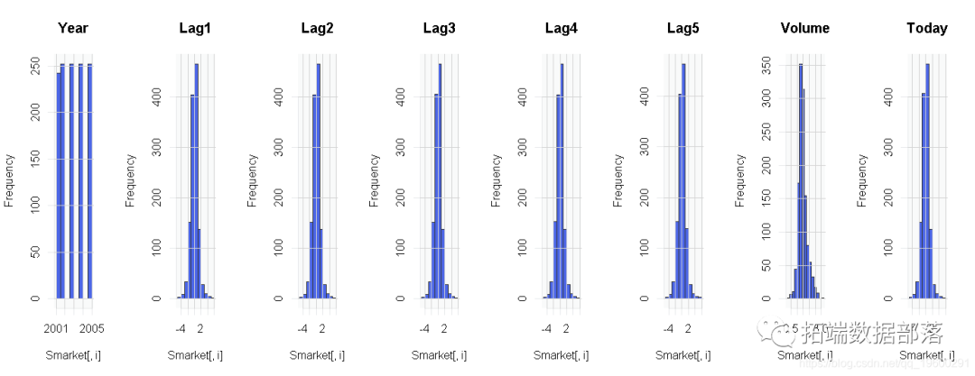 在本教程中,你将使用股市数据集。该数据集显示了2001年至2005年间标准普尔500股票指数的每日收益率。